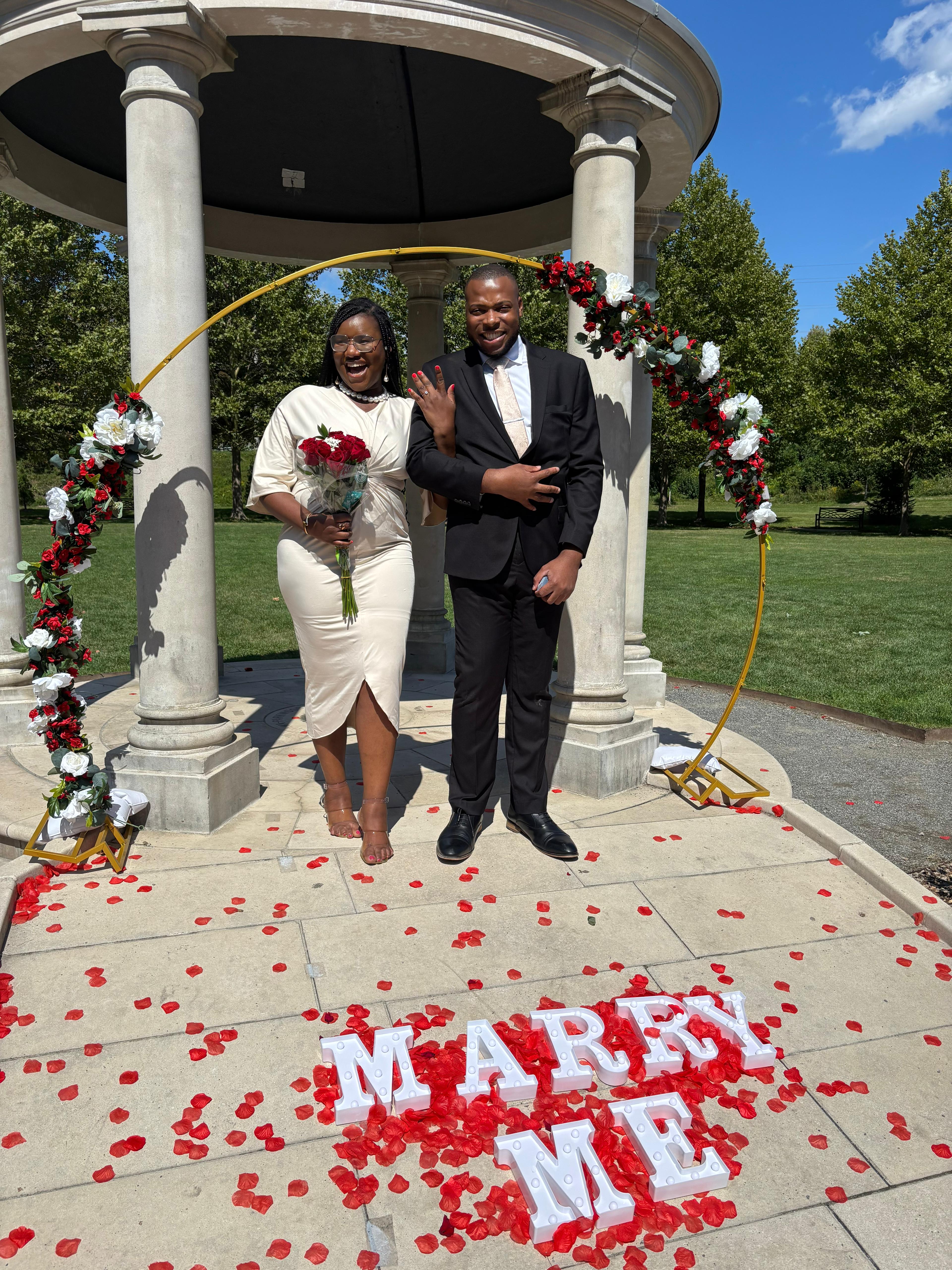 Then, on September 6, 2025, at the beautiful Oshawa Botanical Gardens, I got down on one knee and popped the question. She said YES! 💍